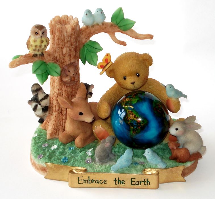 Absolute Rarität!!!USA Exclusive!!!Mit Sockelaufschrift:" Embrace The Earth "2000 Cherished Retailer Exclusive Limited Edition!!!Dieser ausgefallen schöne Cherished Teddie wurde von Glenn Hillmann kreiret, Sohn von Priscilla Hillmann. Glenn's Liebe zur Natur und der Schönheit von Mutter Erde waren die Inspiration zur Schaffung dieser wunderschönen Figur.